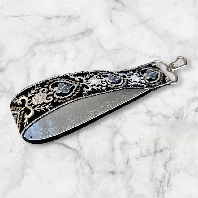 インド刺繍リボン ストラップ(ブラック系)